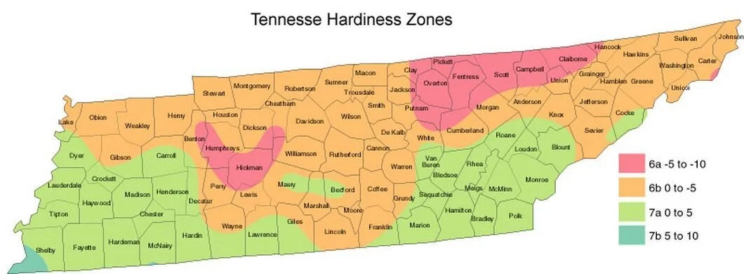 If you live in Tennessee, here’s a hardiness map to help you decide if your plant can survive outside!