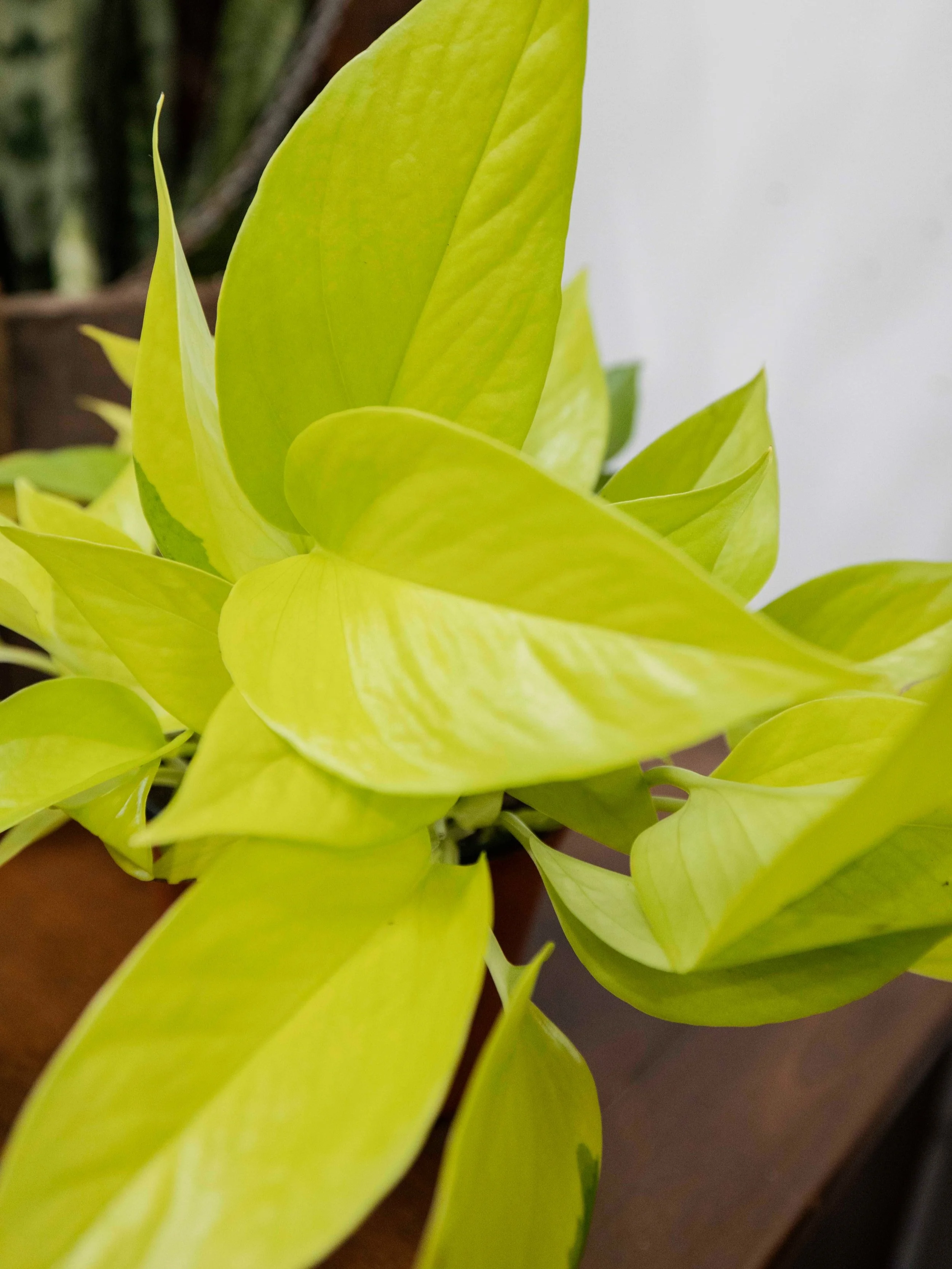 Pothos are a crowd favorite plant. They’re durability as a houseplant has even earned them the nickname “devil’s ivy.” They prefer you don’t wait a month to water them, but they are pretty forgiving of under watering. You should water your pothos once half the soil has dried. If you notice the leaves are starting to droop, give it a good soak and it will bounce back in a few hours. They can thrive in most light conditions—just know that the less light they have, the less growth you’ll see. They come in several different species all with ranging variegation.